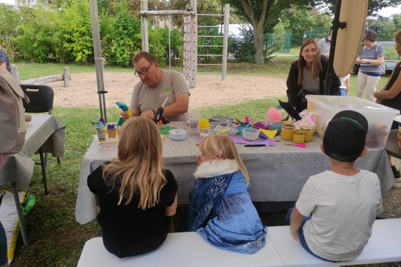 Angebot. Kinder konnten ihrer Kreativität beim Dekorieren von Blumentöpfen freien Lauf lassen oder